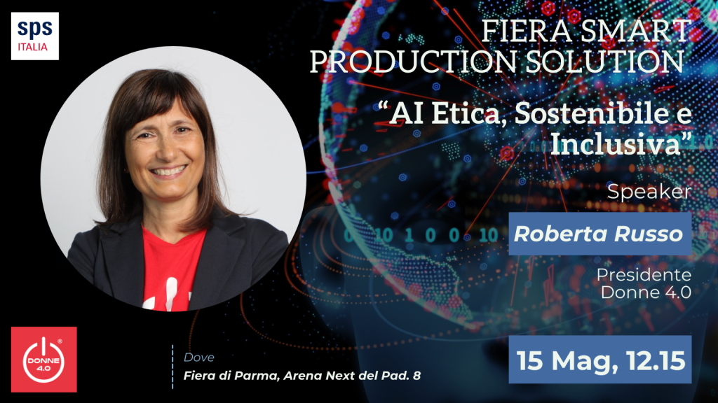 Il prossimo 15 maggio, dalle ore 12:15 alle 13:00, alla Fiera Smart Production Solution a Parma, la nostra Presidente Roberta Russo condurrà il workshop “AI Etica, Sostenibile ed Inclusiva”.