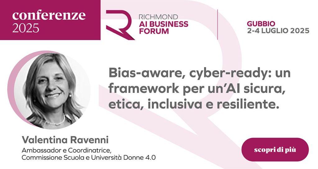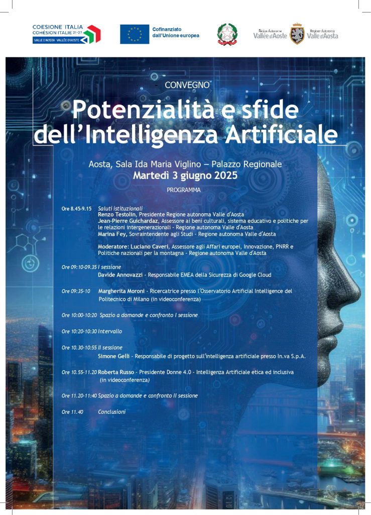 Il prossimo 3 giugno la nostra Presidente Roberta Russo interverrà al Convegno Potenzialità e sfide dell’Intelligenza Artificiale, organizzato dalla Regione autonoma Valle d’Aosta e dedicato agli studenti delle scuole superiori, con uno speech dal titolo “Intelligenza Artificiale etica e inclusiva“.