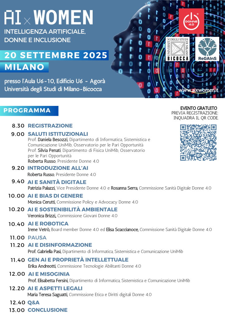 Oggi abbiamo il piacere di annunciare la prossima tappa di AIxWomen che sarà effettuata in collaborazione con l’Università degli Studi di Milano-Bicocca.